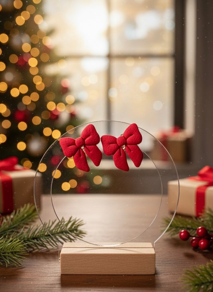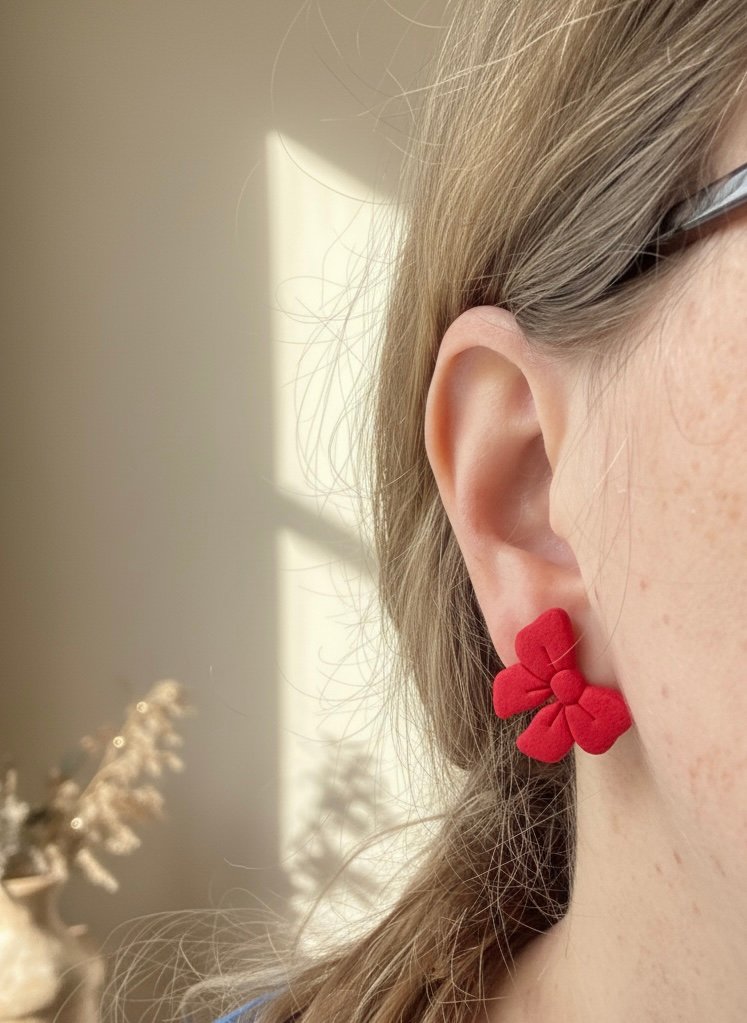 Šie žaismingi, tačiau elegantiški auskarai Kaspinėliai pagaminti iš lengvo polimerinio molio. Ryškiai raudonos spalvos kaspinėliai suteiks išskirtinumo bet kokiai aprangai – nuo kasdienės iki šventinės.