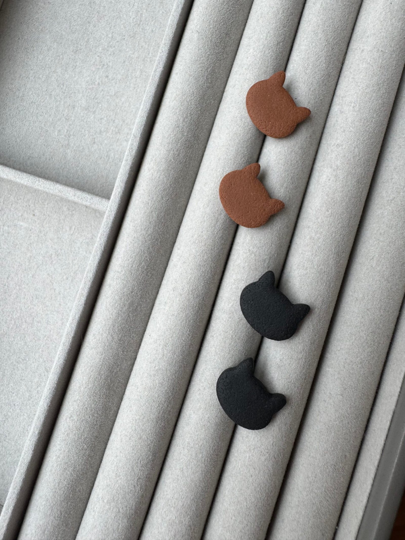 Ieškote auskarų, kurie puikiai papildytų Jūsų stilių ir suteiktų išskirtinį akcentą? Auskarai Katės siluetas yra tai, ko Jums reikia! Šie polimerinio molio auskarai pasižymi unikaliu dizainu, kuris išryškina nuostabią katės formos detalę. Švelnus, estetiškas katės siluetas taps tobulu pasirinkimu gyvūnų mylėtojams ar minimalistinio stiliaus gerbėjams.