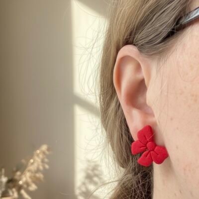 Šie žaismingi, tačiau elegantiški auskarai Kaspinėliai pagaminti iš lengvo polimerinio molio. Ryškiai raudonos spalvos kaspinėliai suteiks išskirtinumo bet kokiai aprangai – nuo kasdienės iki šventinės.