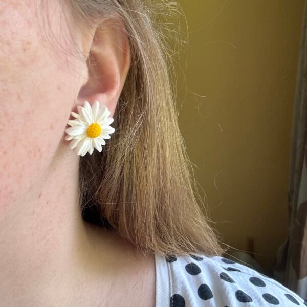 Spindintys vasaros nuotaika – šie didesni ramunių žiedų auskarai ne tik lengvi, bet ir išraiškingi. Jie tarsi gėlėtas pareiškimas, kurį nešioji ant ausų – apie švelnumą, laisvę ir meilę gamtai. Medžiaga: polimerinis molis Užsegimas: nerūdijančio plieno (galima rinktis sidabro +2€ už porą) Dydis: apie 2,5cm Pastaba: Kiekvieni auskarai yra unikalūs, todėl galimi kelių milimetrų dydžio…